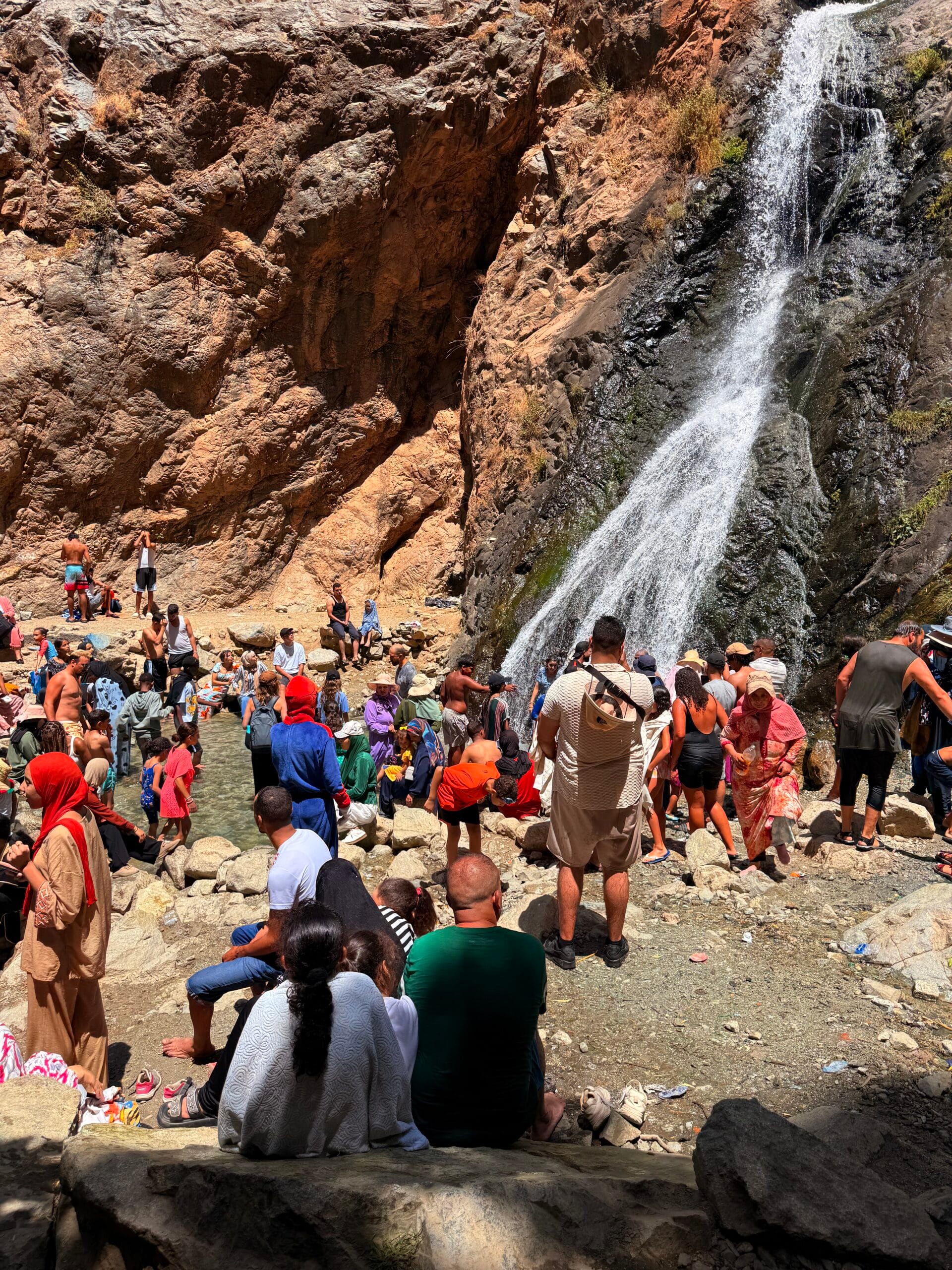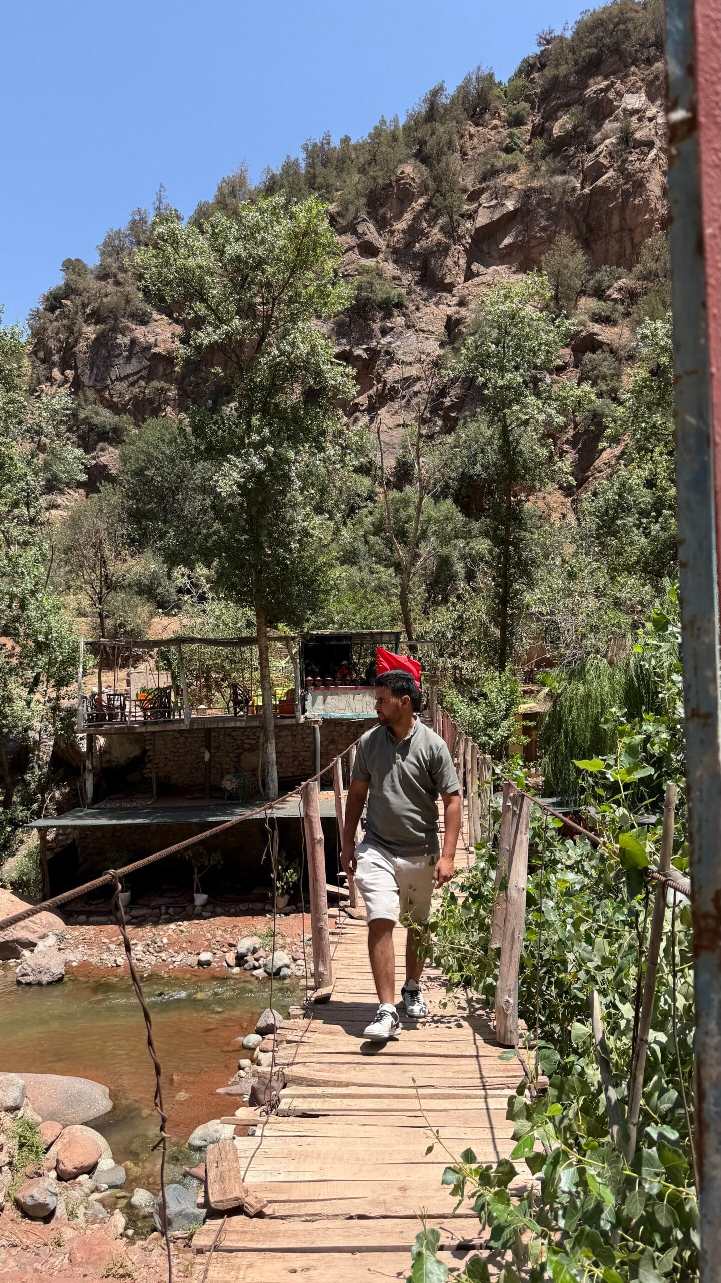 A day trip from Marrakech to the Ourika Valley offers a revitalising getaway into the verdant Atlas Mountains’ foothills. The excursion’ll stop at a local Berber family’s house for a hearty welcome and a traditional cup of mint tea as you meander past charming Berber settlements and lush riverbanks, providing a real look into mountain life. Then, the day trip continues to Setti Fatma, where a guided walk takes you to its well-known waterfalls, which are surrounded by incredible landscapes, lush vegetation, and refreshing mist. After two to three hours of hiking, you may unwind and have a delectable lunch by the river, with your feet almost touching the running water—a very serene and exceptional experience. One of the most unforgettable day trips from Marrakech is this Ourika Valley excursion, which combines culture, nature, and leisure. We return to Marrakech in the late afternoon to finish our day trip from Marrakech to Ourika Valley.